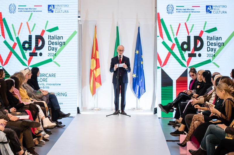 -Во Италија, дизајнот не е само индустрија, тој е одраз на нашиот културен етос, каде што убавината и софистицираноста беспрекорно се спојуваат со иновациите и одржливоста. Нашата посветеност на дизајнот е патување кон создавање предмети кои не само што се естетски привлечни, туку се проткаени со материјална вредност – изработени преку процеси кои го почитуваат нашето наследство додека ја прифаќаме иднината. Италија, со својата водечка позиција во светот на дизајнот, ги прикажува производите што ја отелотворуваат душата на занаетчиството и напредниот марш на иновациите – истакна амбасадорот Силвестри во своето обраќање.