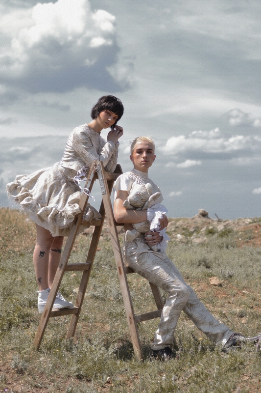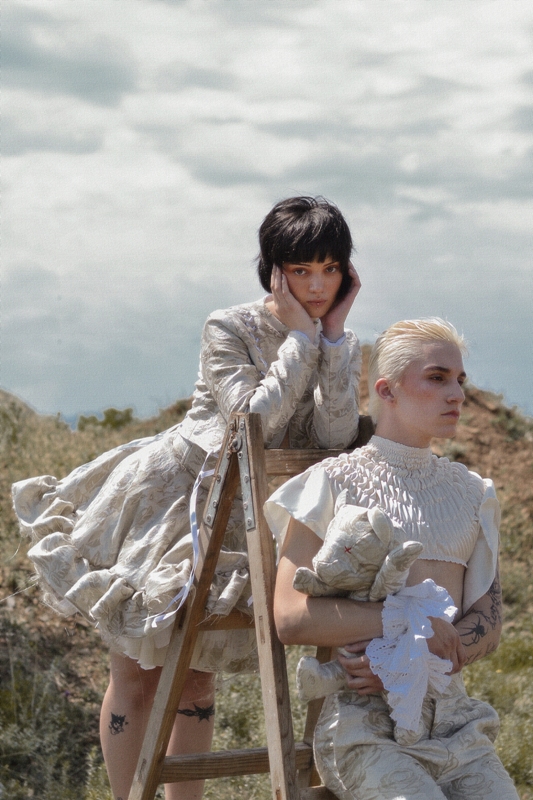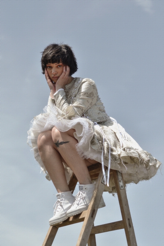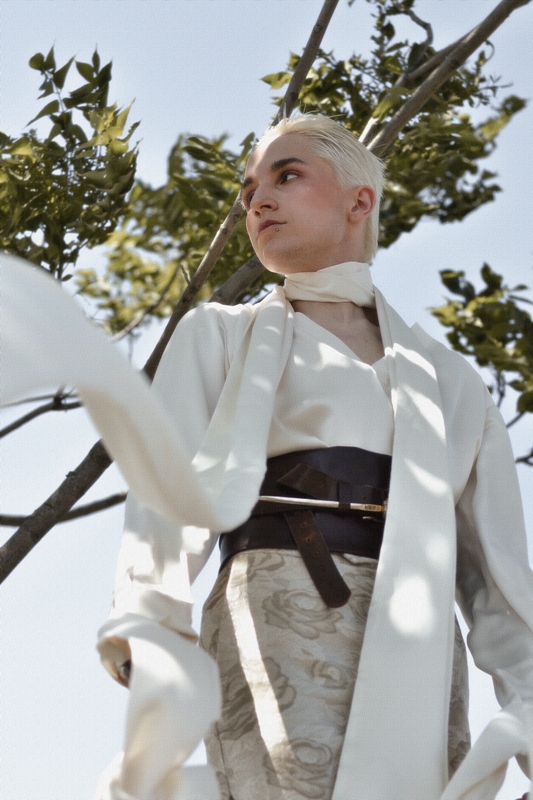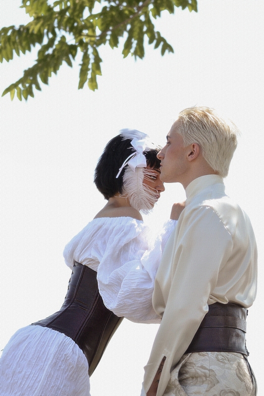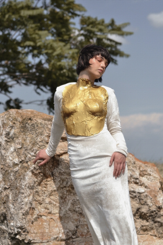 -Во овие слики, уметниците се одалечиле од апстракциите на средновековната естетика за да се обидат да го доловат животот во неговата најрепрезентативна форма. Како таква, оваа промена е намерно претставена со поставување на поставката на фотосесијата во самата природа. Понатаму, природните пејзажи служеле како позадина за репрезентацијата на засилено духовно искуство во времето на ренесансата. Ова потрага за духовна чистота е претставена во светлите типови на текстил избрани како материјали. Меѓутоа, во исто време тие се сопоставени со богатството на златната боја. Златото симболизира наклон кон луксузот, чии навестувања се рефлектираат во подемот на хедонизмот за време на ренесансата. Понатаму, облеката содржи мешани елементи кои ја комбинираат естетиката на пониските и повисоките општествени класи од овој временски период за да создадат иновативен идеал за убавина. Белата ткаенина во облеката ја претставува едноставноста и функционалноста во облеката што ја фаворизирале ниските класи во тоа време. Од друга страна, застапеноста на корсети, бисери и други луксузни додатоци го претставува раскошот на повисоките општествени класи. Конечно, златниот оклоп што го дополнува белиот кадифен фустан го претставува повторното откривање и вградување на античките мотиви во ренесансната уметност.