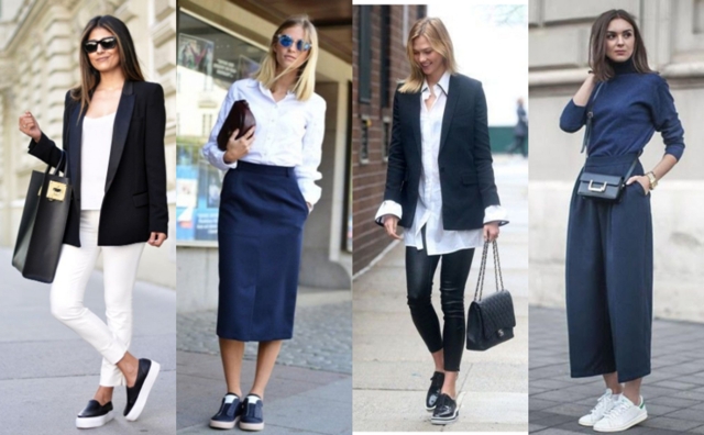 За оние работни места во кои важат кодовите на деловното облекување, но и дозволуваат одредена доза на лежерност, предлагаме комбинации како панталони, сако, кошула и ниски чевли, понекогаш фармерки, сако и оксфорд-чевли, а неретко и широки панталони со тенок џемпер и бели патики. Забележувате дека ротираат парчиња како сако, тесни панталони, блузи, едоставни кошули, тенки џемпери, трендовски килот-панталони, како и ниски обувки и патики. Тие припаѓаат на делот на кежула мода и како деловна облека ги заменуваат строгите костими, молив-здолништата и салонките, но само во канцеларии и професии кои дозволуваат полежерен стил.