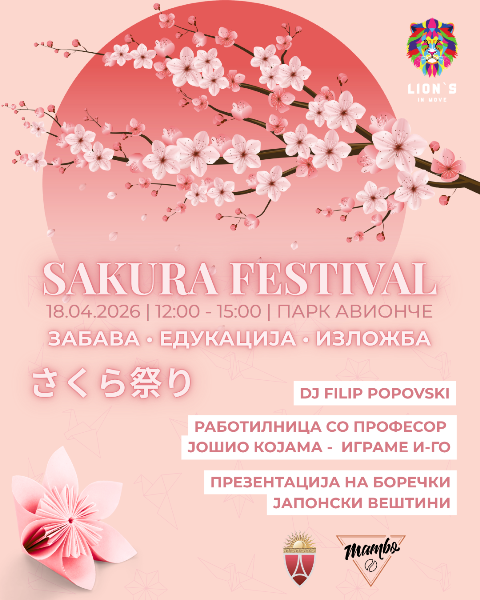 На 18 април 2026 година, во Парк „Авионче“, ќе се одржи Sakura Festival, културно-едукативен настан кој има за цел да ја доближи јапонската традиција, уметност и филозофија до локалната публика преку внимателно осмислена програма.