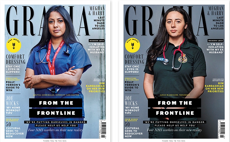 Бројни списанија (Grazia, Men’s Health, Vanity Fair) директно дадоа поддршка на здравствение работници и наместо модели и славни личности нив им ги посветија насловните.
