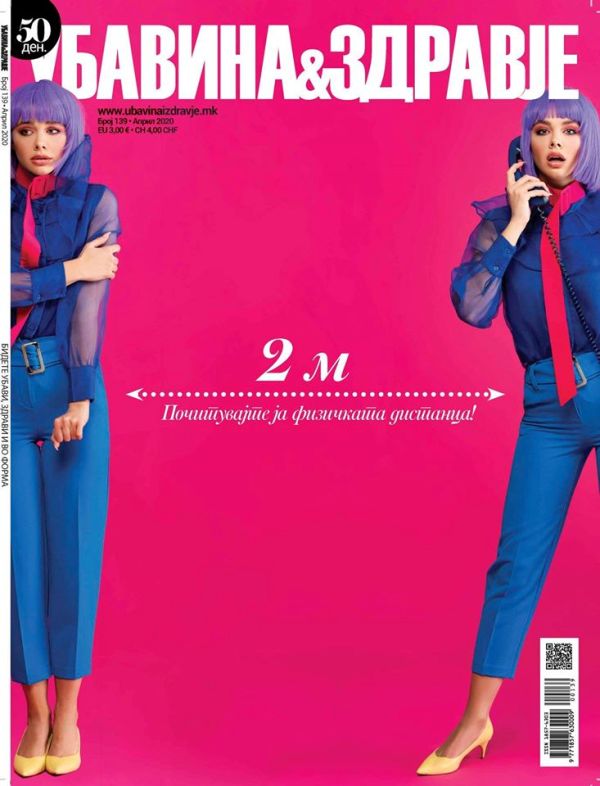 Насловна која е посветена на реалноста на нашето време направи и нашето списание „Убавина и здравје“ и на првата страница стави две пози на една манеканка , оддалечени една од друга два метри, колку што е препорачаната социјална дистанца.