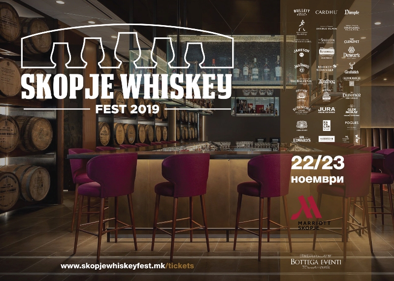 SKOPJE WHISKEY FEST 1.0 ќе се оддржи на 22 и 23 ноември во Skopje Marriott Hotel, петок од 18.00 до 00.00, сабота од17.00до 00.00.