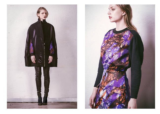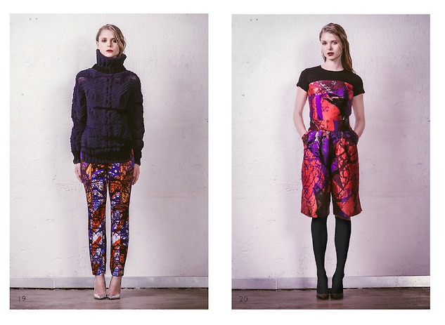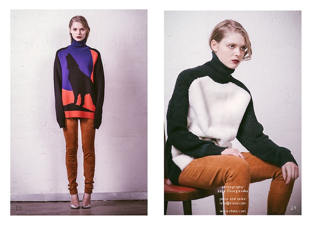 Познатиот македонски моден креатор Ристо Бимбилоски, кој живее и твори на релација Париз-Охрид-Њујорк, на својот сајт risto.com ја претстави својата нова колекција за сезоната есен-зима 2014/15. Лукбукот го сними нашата фотографка Лепа Георгиевска. Креациите, кои вооснова се со препознатливите принтови и плетки на дизајнерот, се колоритни, со графички апликации и плетени шари. Застапени се темносината, светлокафена, црна, сива, виолетова, неонско розова и златна боја. Преку принтовите со страшна тиква, волк под полна месечина и слично, се наѕира инспирација од Halloween.