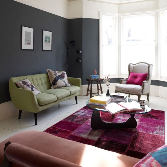 Сместен во северен Лондон во куќа изградена во 1860 година, овој стан е реновиран и декориран на модерен начин. Доминираат темни ѕидови и интензивни бои, кои допринесуваат за карактерен изглед на просторот. Ова е највпечатливо во дневната соба, во која има темносиви ѕидови, камин обоен во црна боја и килим во етно стил и во виолетови тонови. Нијансите на темно виолетова се среќаваат низ целиот стан, во спалната соба, на ѕидот во главната бања, дрвената ограда на скалите кои водат до вториот кат и на декоративните елементи како ламбите и табуретките.