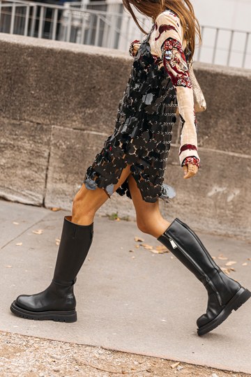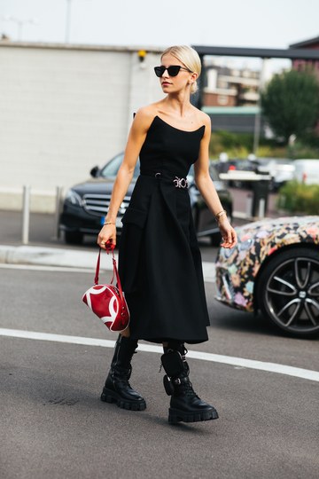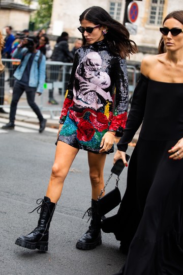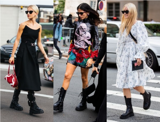 Да, војничките чизми може да се вметнат во женствени комбинации, и покрај нивниот груб изглед, особено кога се во микс со фустан. Овој вид на обувки е повторно тренд сезонава, ги има и во дизајнерските колекции на Прада и Ботега Венета, а следниве фотографии на познатите модни трендсетерки се пример како да се постигнат добри комбинации. На пример, Гилда Амбросио носи високи војнички чизми со краток фустан украсен со светкави пулејки, Шарлот Гроневолд ваквите чизми ги споила со романтичен фустан со цветен дезен, а Пернил Тејсбек со кожено сако. Еве уште неколку идеи.