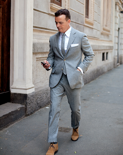 Модата постојано се ниша како клатно – она што еднаш било во мода, неизбежно се враќа назад повторно. Кога станува збор за машката мода, модното клатно сега се наклонува на несјајната страна – мат костум или неговата ултимативна верзија, костумот од сив фланел.
