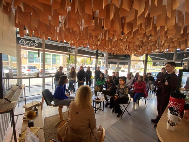 Модниот дизајнер Ѓорѓи Петрушев раскажа нешто повеќе за себе, своите искуства од проектната студиска посета на „Fashion Employment Hub Thessaloniki“, не’ запозна со Софтверот CAD наменет за конфекциската и текстилната индустрија, како и со „Fashion Snoops“ – платформата за модни предвидувања која ги дава насоките за најновите светски модни трендови. Исто така дизајнерот презентираше дел од своето портфолио и равојни колекции кои оставија силен впечаток на присутните.