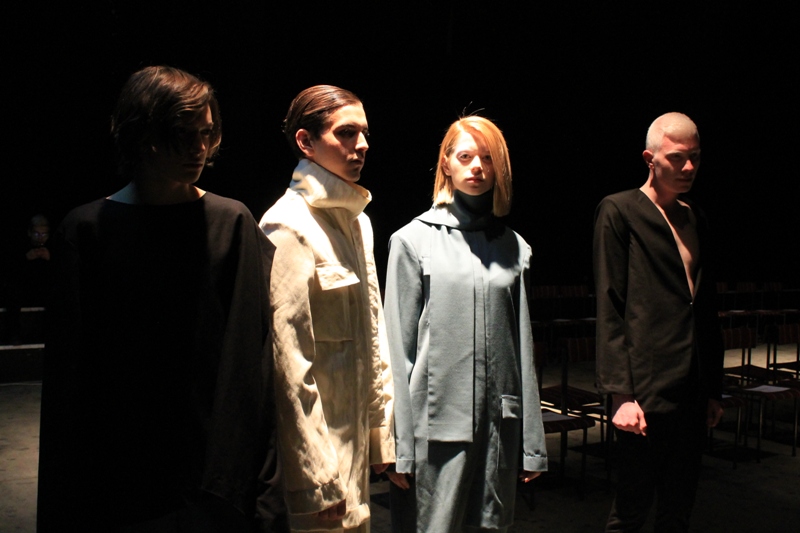 Дизајнерот предлага повеќе парчиња – разни видови на широки панталони и плетени хеланки, горни делови со волумен и предолги ракави, асиметични наметки, необични превиткани набори скроени во задниот дел од креациите, блузи со високо околувратник, фустани кои може да се користат како туники (или обратно), микс на лелеавост и флудност со блага форма на построги, но поедноставени кроеви. Интересен е изборот на модели кои ги носеа креациите на модниот перформанс, меѓу кои кои ги видовме манекенката Ана Калачоска, дизајнеката Милена Атанасова и урбани млади ликови откриени по пат на кастинг, како микс необични карактери на кои најдобро се проектира визијата на дизајнерот.